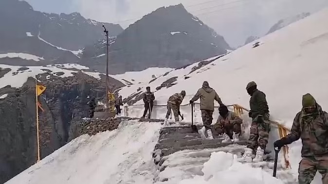 हेमकुंड साहिब की तीर्थयात्रा 25 मई से शुरू हो जाएगी। जिसे देखते हुए सेना के जवान हेमकुंड साहिब के आस्था पथ से बर्फ हटाने में जुटे हुए हैं। बुधवार को सेना के जवानों ने अटलाकोटी से हेमकुंड साहिब तक जाने वाली सीढ़ियों से बर्फ हटा ली है। गोविंदघाट गुरुद्वारे के वरिष्ठ प्रबंधक सरदार सेवा सिंह ने बताया कि हेमकुंड साहिब गुरुद्वारा परिसर और गुरुद्वारे तक जाने वाले चारों गेटों के आगे से भी बर्फ को हटा लिया गया है। यात्रा शुरू होने से पहले आस्था पथ को आवाजाही के लिए तैयार कर लिया जाएगा। सर्दियों में हेमकुंड साहिब में हमेशा भारी बर्फबारी होती है। जिसके चलते यहां जगह-जगह हिमखंड पसरे रहते हैं। ऐसे में भारी ठंड के बावजूद भी जवानों ने बर्फ हटाने का काम जारी रखा है।