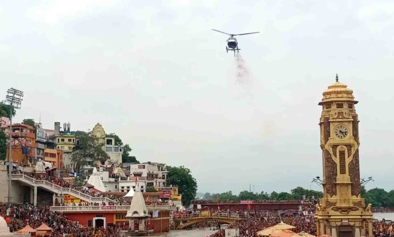 सीएम धामी ने किया कांवडि़यों का स्वागत, शिवभक्तों पर बरसाई पंखुड़ियां