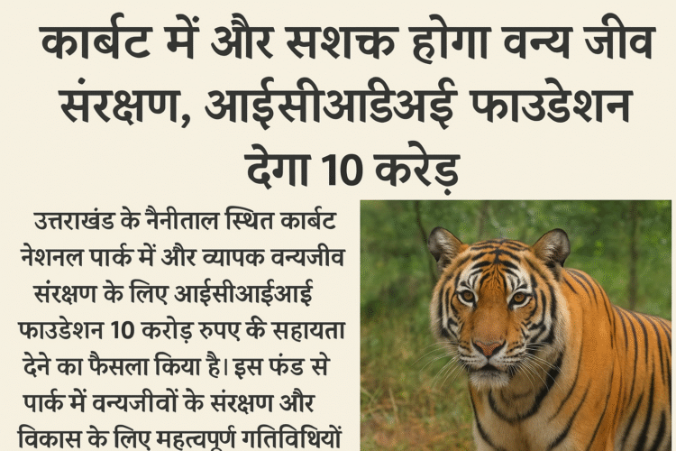 कार्बेट टाइगर रिजर्व में वन्यजीव संरक्षण को बढ़ावा देने के लिए आईसीआईसीआई फाउंडेशन ने 10 करोड़ रुपये और एस्ट्रल कंपनी ने 1 करोड़ रुपये का योगदान देने का निर्णय लिया है। यह राशि कॉर्पोरेट सामाजिक उत्तरदायित्व (सीएसआर) फंड से प्राप्त होगी, जिसका उपयोग वन कर्मियों, वन्यजीवों, और संसाधनों के विकास में किया जाएगा। यह पहल कार्बेट के बाघ रक्षक कार्यक्रम के तहत हो रही है, जिससे दीर्घकालिक सकारात्मक परिणाम मिलने की उम्मीद है।