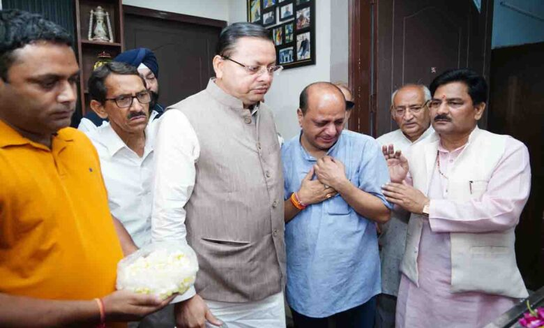 मुख्यमंत्री पुष्कर सिंह धामी, पूर्व मुख्यमंत्री रमेश पोखरियाल ‘निशंक’ और सैकड़ों भाजपा नेता और कार्यकर्ता देहरादून में भारतीय जनता पार्टी के प्रदेश मीडिया प्रभारी मनवीर सिंह चौहान के आवास पर उनकी दिवंगत पत्नी उमा चौहान को श्रद्धांजलि देने के लिए एकत्र हुए।