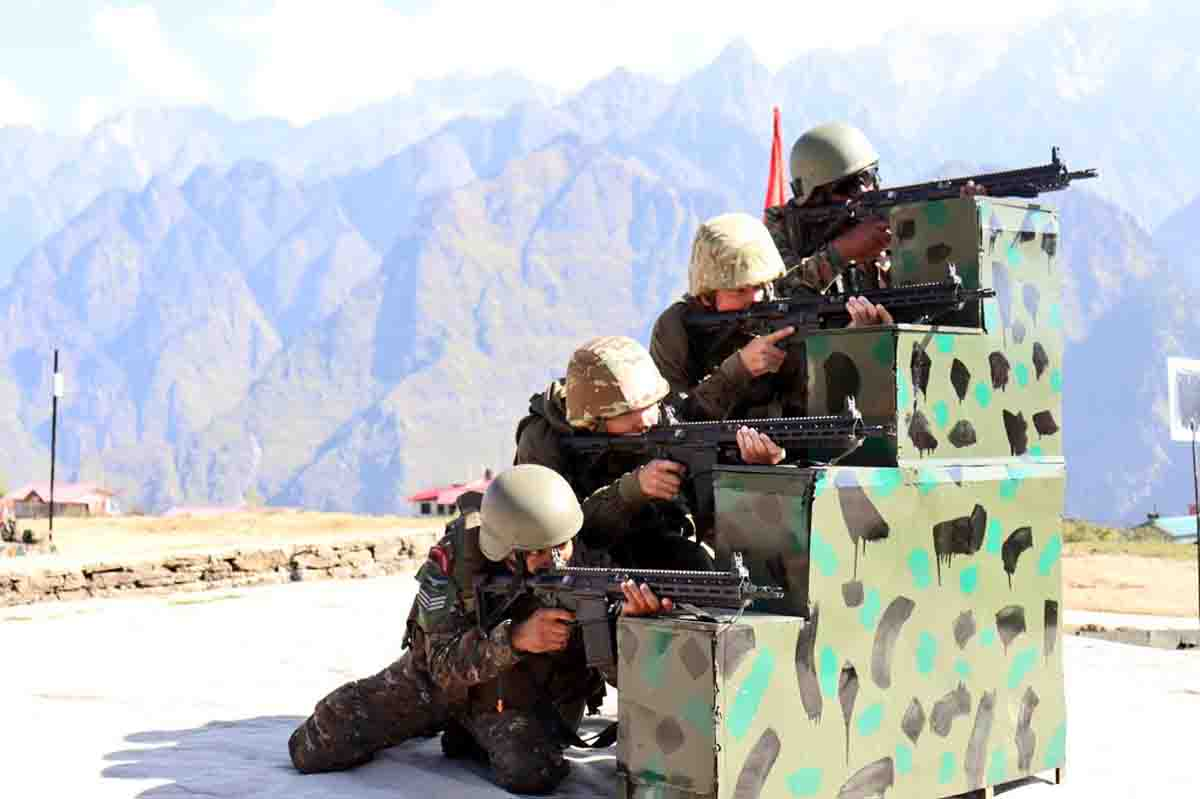 चमोली जिले के औली में चल रहे भारत और कजाकिस्तान के संयुक्त सैन्य अभ्यास काजिंद-2024 के दौरान रविवार को भारतीय और कजाकिस्तान सेनाओं के जवानों द्वारा फायरिंग अभ्यास के साथ हथियारों और उपकरणों का प्रदर्शन किया गया।