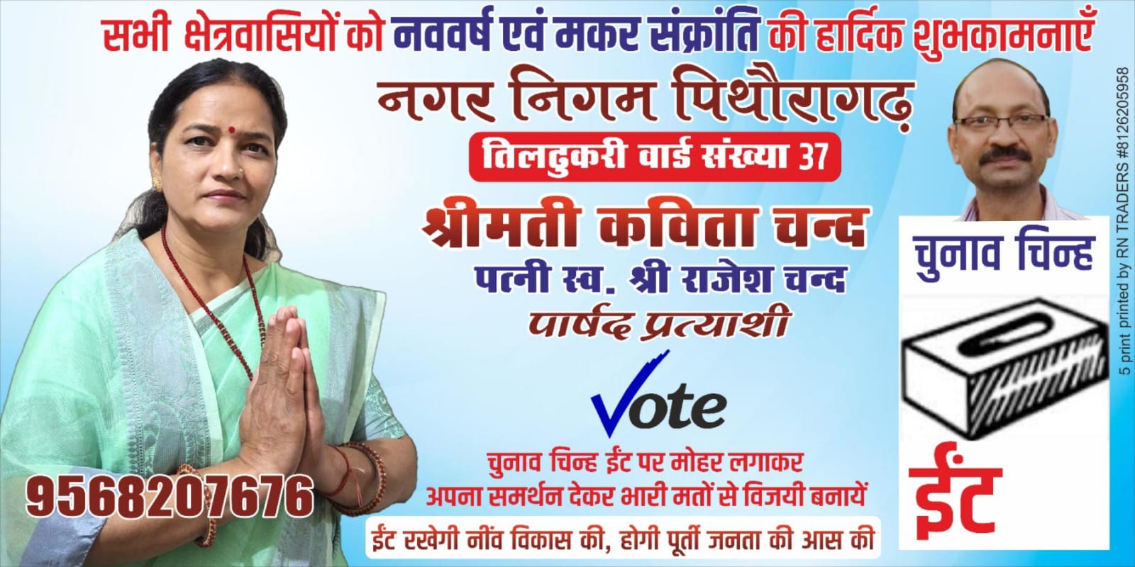 वार्ड नंबर 37 तिलधुकरी वार्ड के निवासियों के लिए एक नई उम्मीद की किरण जगी है, जिसका नाम है श्रीमती कविता चंद। वह क्षेत्र की एक मेहनती, ईमानदार और समर्पित नागरिक हैं, जो हमारे तिलधुकरी वार्ड के निवासियों की सेवा लिए तैयार हैं।