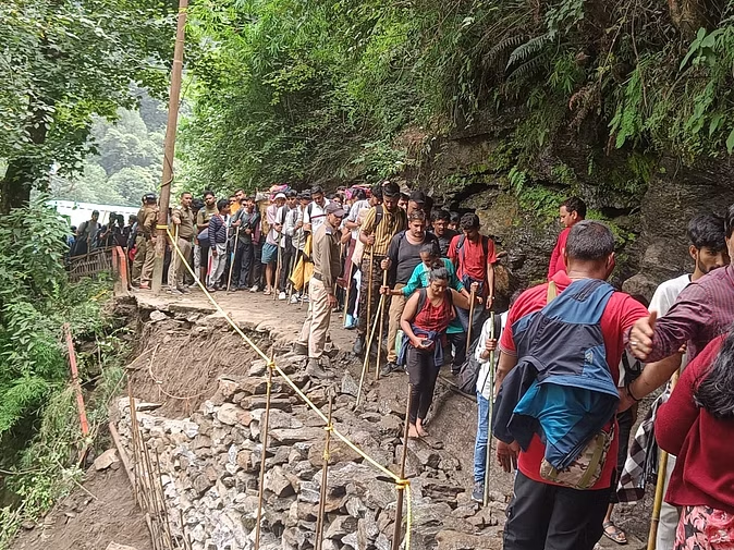 इसके बाद सुबह आठ बजे तक नौ हजार से अधिक और पूर्वान्ह 11 बजे तक कुल 13,000 श्रद्धालु धाम के लिए रवाना हो गए थे। पैदल मार्ग पर प्रभावित क्षेत्र चीरबासा भैरव मंदिर के समीप सुरक्षा जवानों की मौजूदगी में यात्रियों को रास्ता पार कराया गया। लोनिवि ने यहां पर 20 मीटर क्षेत्र में पुस्ते का निर्माण किया है, जिससे आवाजाही हो रही है।