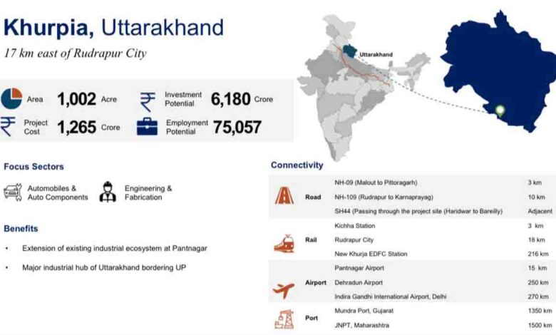 मुख्यमंत्री पुष्कर सिंह धामी ने उत्तराखंड के खुरपिया को औद्योगिक स्मार्ट सिटी की सूची में शामिल करने के लिए प्रधानमंत्री नरेंद्र मोदी का आभार व्यक्त किया है. उन्होंने कहा कि प्रस्तावित औद्योगिक स्मार्ट सिटी से राज्य के आर्थिक विकास को गति मिलेगी और बुनियादी ढांचागत गतिविधियों को बढ़ाने में मदद मिलेगी। खुरपिया में 6,180 करोड़ रुपये की निवेश क्षमता होगी और 75,057 लोगों को रोजगार मिलेगा। सरकार ने खुरपिया के लिए फोकस सेक्टर में ऑटोमोबाइल, ऑटो कंपोनेंट, इंजीनियरिंग और फैब्रिकेशन सेक्टर को शामिल किया है।