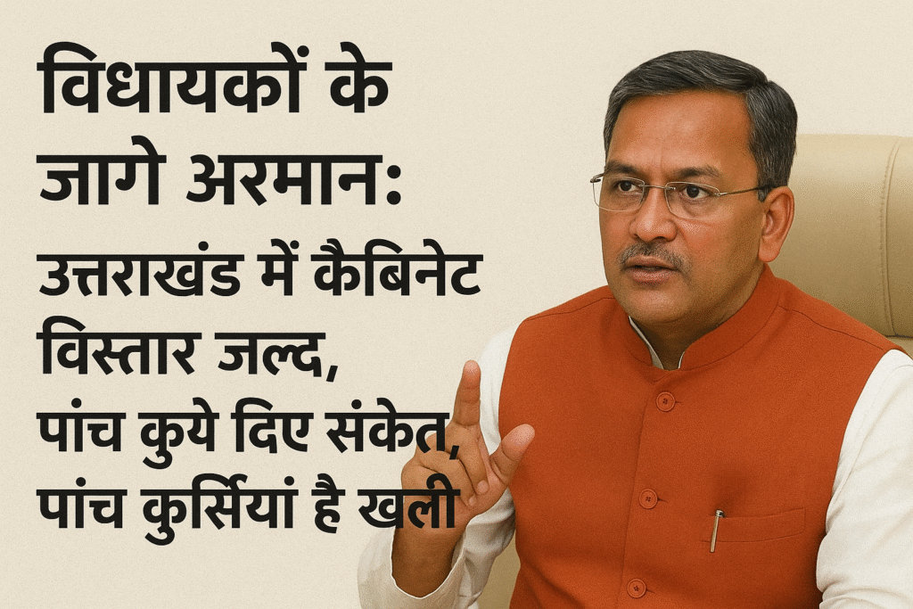 उत्तराखंड में जल्द ही राज्य कैबिनेट का विस्तार होने की संभावना है। मुख्यमंत्री पुष्कर सिंह धामी और भाजपा प्रदेश अध्यक्ष महेंद्र भट्ट ने इसके स्पष्ट संकेत दिए हैं। वर्तमान में राज्य कैबिनेट में पांच पद खाली हैं, जिनमें चार पद लंबे समय से रिक्त हैं, जबकि एक पद पूर्व संसदीय कार्य मंत्री प्रेमचंद अग्रवाल के इस्तीफे के बाद खाली हुआ है। इस विस्तार की चर्चाओं ने भाजपा विधायकों में मंत्री पद की उम्मीदें फिर से जगा दी हैं।